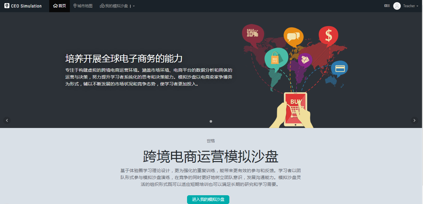 ●以回合制的跨境電商運(yùn)營決策展開,同時(shí)可以容納數(shù)百個(gè)學(xué)生團(tuán)隊(duì),并可以與計(jì)算機(jī)模擬的賣家展開競爭,靈活適用于各種規(guī)模的教學(xué)組織;